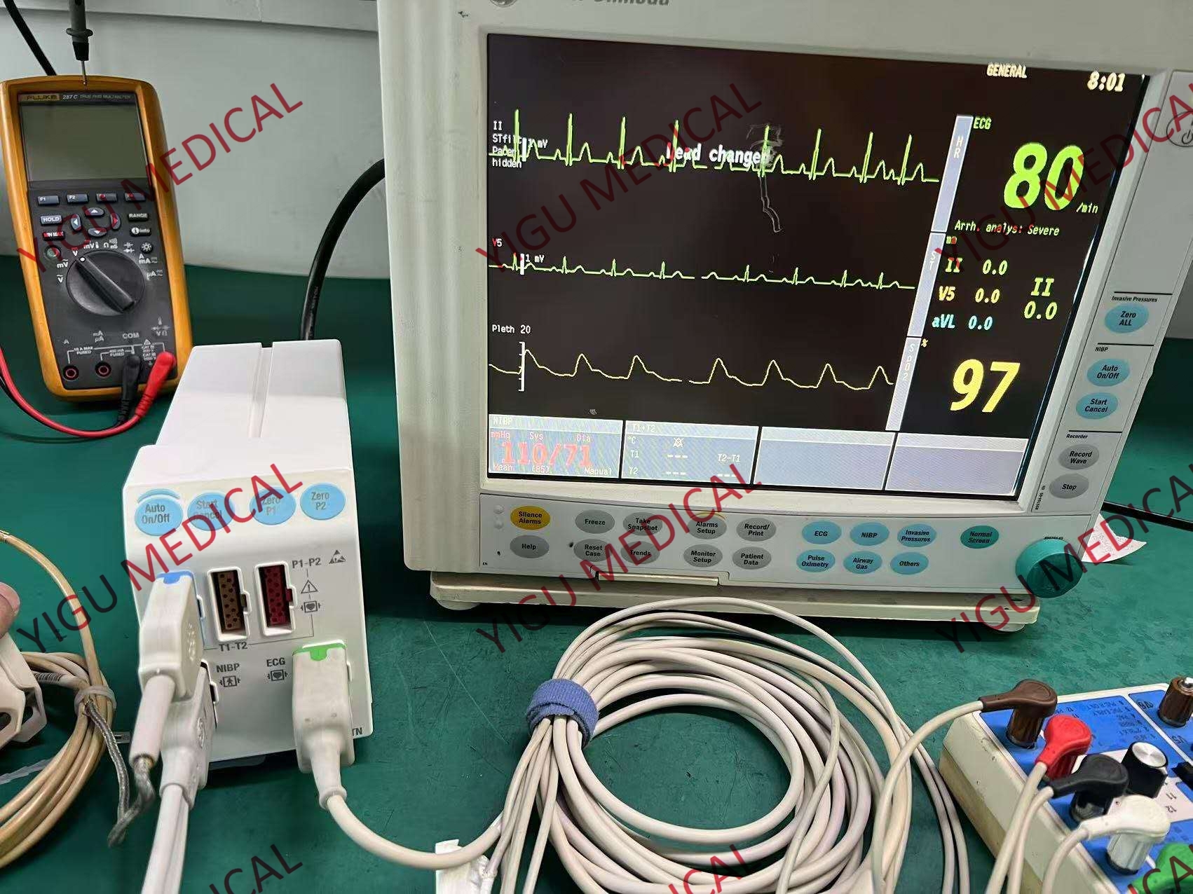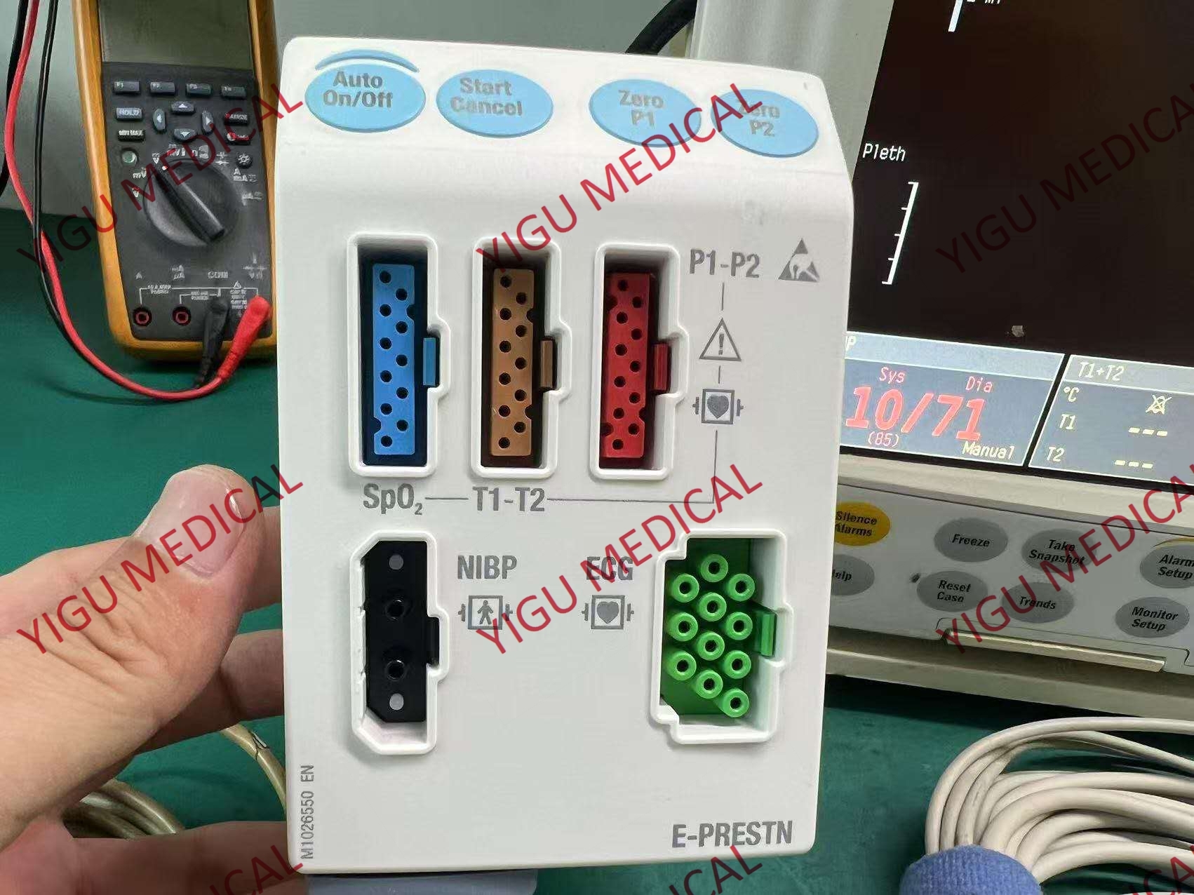 - può misurare una vasta gamma di parametri fisiologici, tra cui l' elettrocardiogramma (ECG),che riflette l' attività elettrica del cuore e aiuta a rilevare problemi cardiaci come aritmieÈ disponibile una misurazione non invasiva della pressione sanguigna (NIBP), che fornisce informazioni sulla pressione sistolica e diastolica per valutare lo stato circolatorio del paziente.Può anche misurare fino a sei canali di pressione sanguigna invasivi per un monitoraggio emodinamico più approfondito in alcuni casiLa temperatura, la saturazione di ossigeno (SpO2) e il tasso di respirazione sono altri parametri chiave che può monitorare.che è utile in scenari di anestesia e di cura respiratoria per monitorare i livelli di gas o agenti rilevanti.